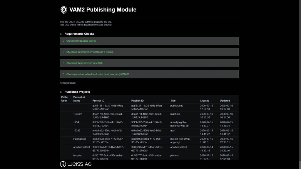 The procedure of organizing and managing published projects works with one single Publishing Module. Once set up, the user can publish and update any number of projects with a button click.