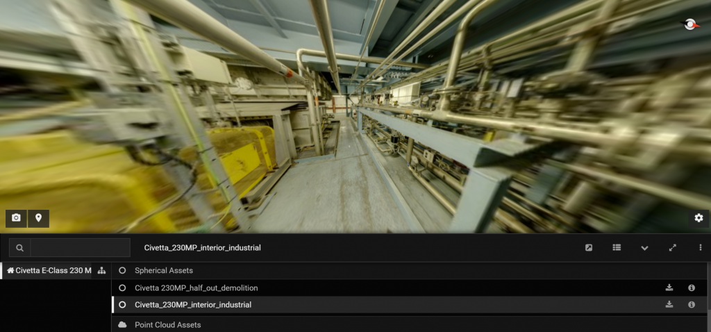 Civetta is commonly used to capture indoor, outdoor or underground factory space and thus produce 360×180° VR tour and 3D models for the digital factory. The I-Detic is further used to capture tubes, frames, objects to add further accuracy to the model. The I-detic is also used to produce 2D/3D digital twins for products and production assets of the factory place. Machine and equipment in the production line can be digitally recorded and accurately documented. Both the hardware can be operated in critical situations with the simple capturing method. Staffs in the factory can capture digital data periodically by themselves right after simple training. The I-Detic is IP68 waterproof and radiation-free, which can be used for inaccessible regions in the factory place.